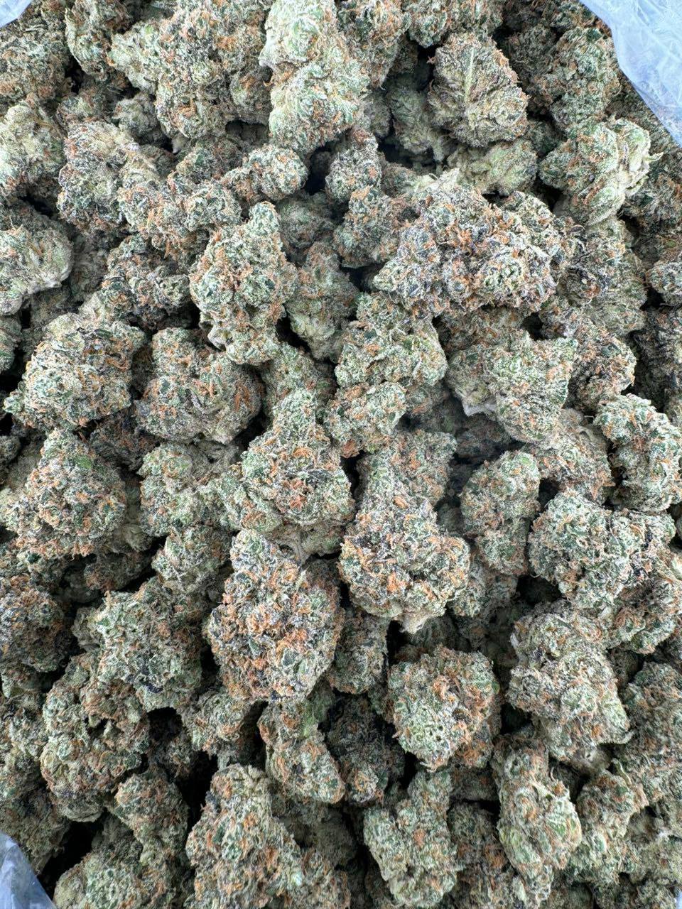 Appearance: Large, sharp conical nugs with mottled sage and deep green margins, finished with glittering trichomes and thick orange pistils.